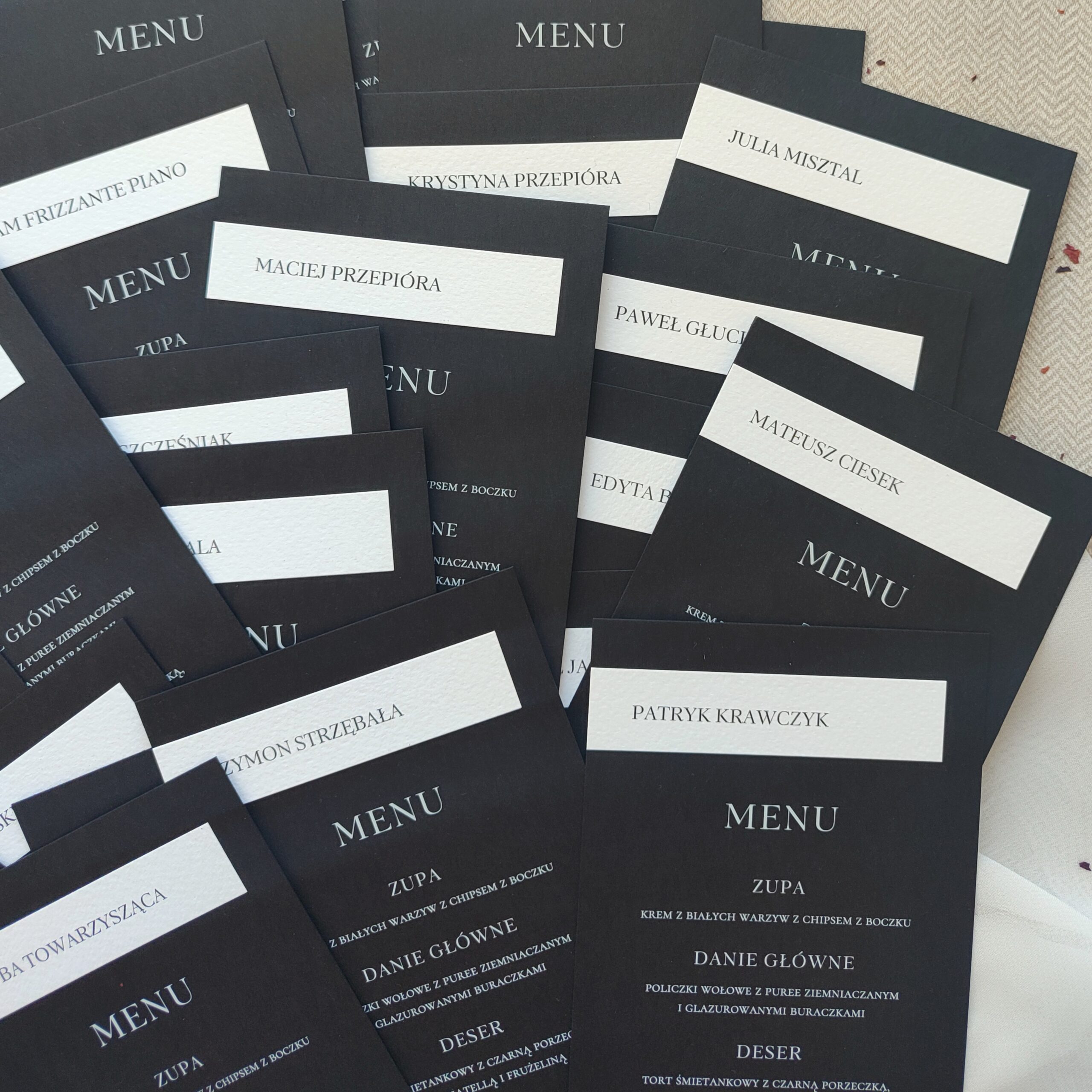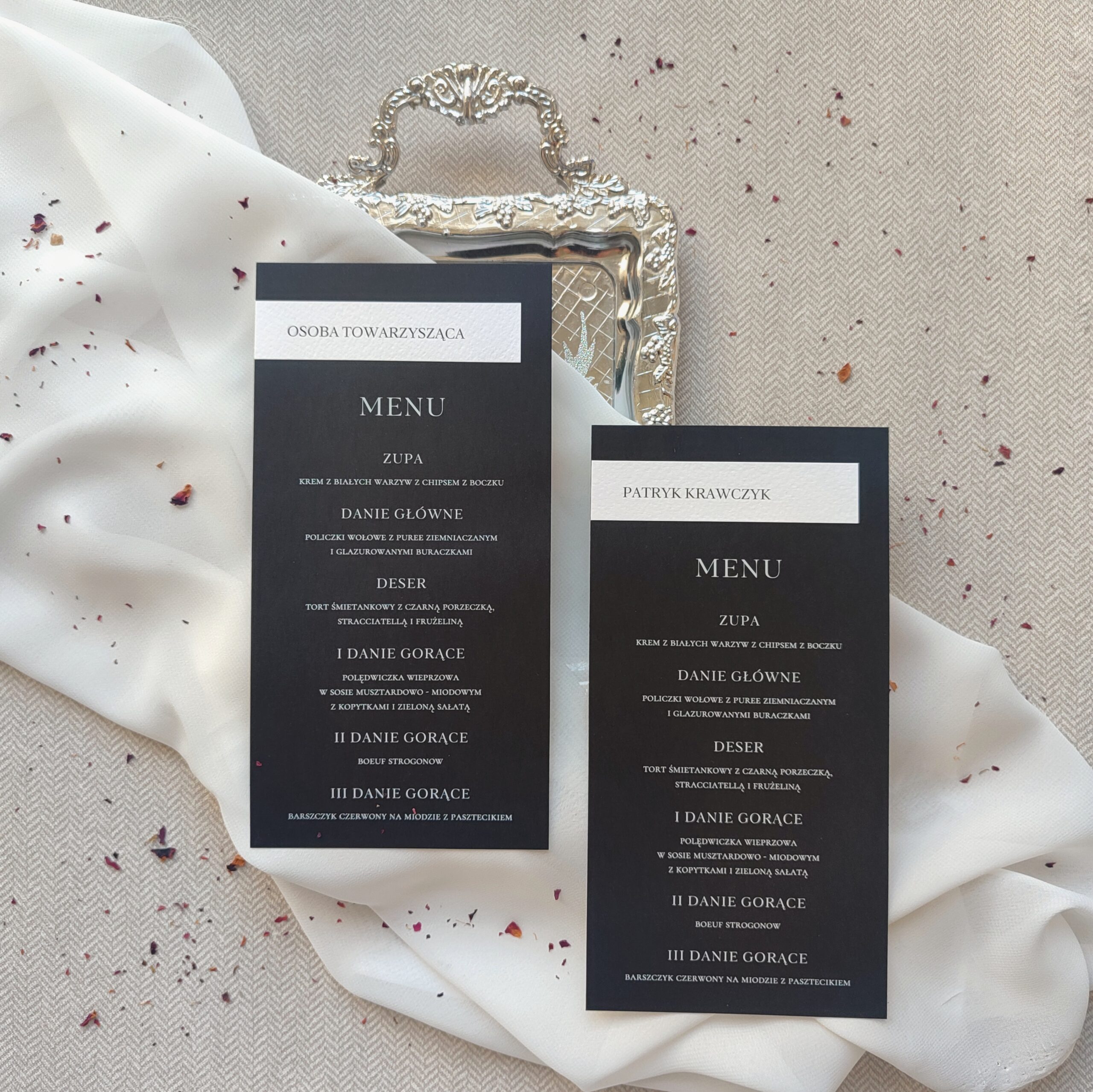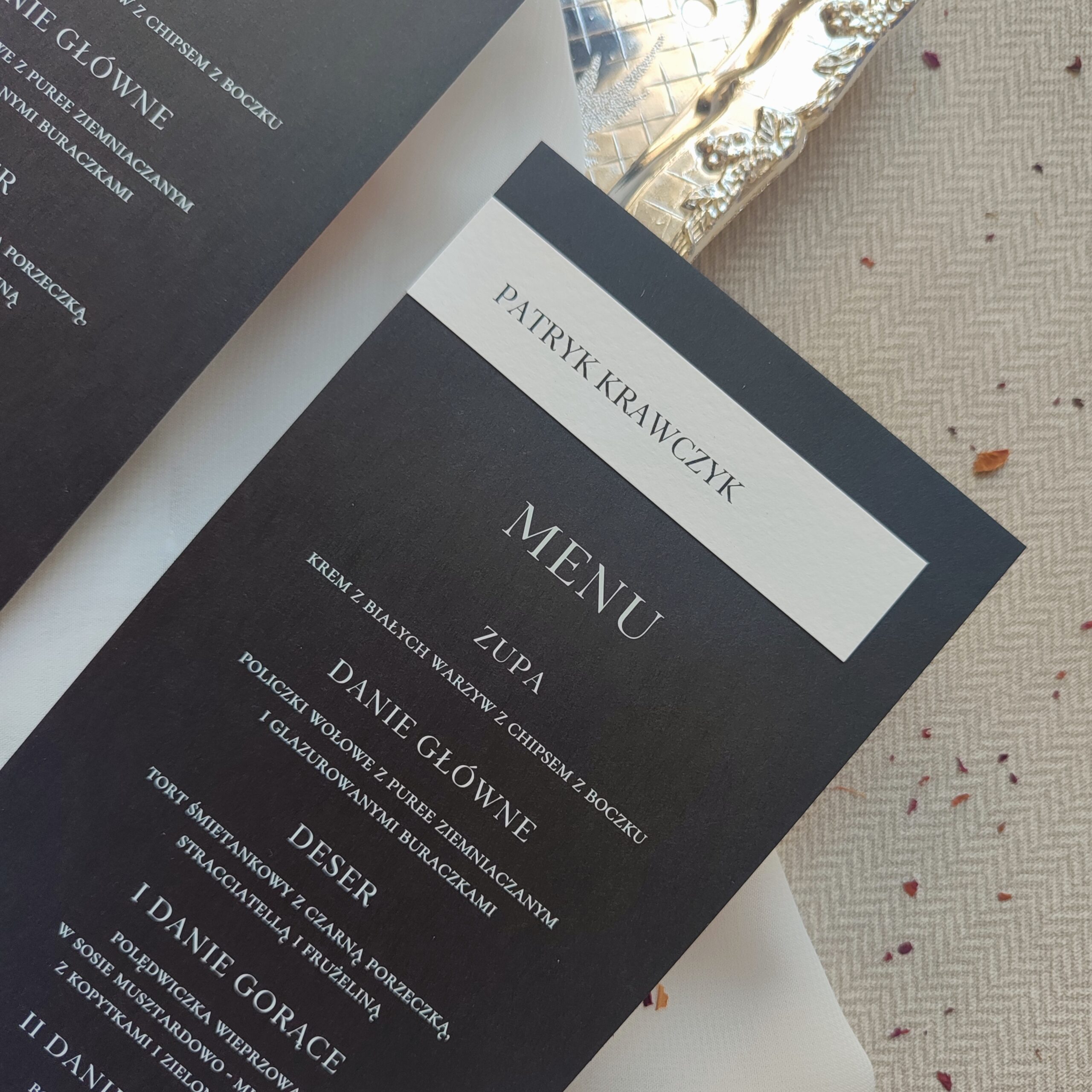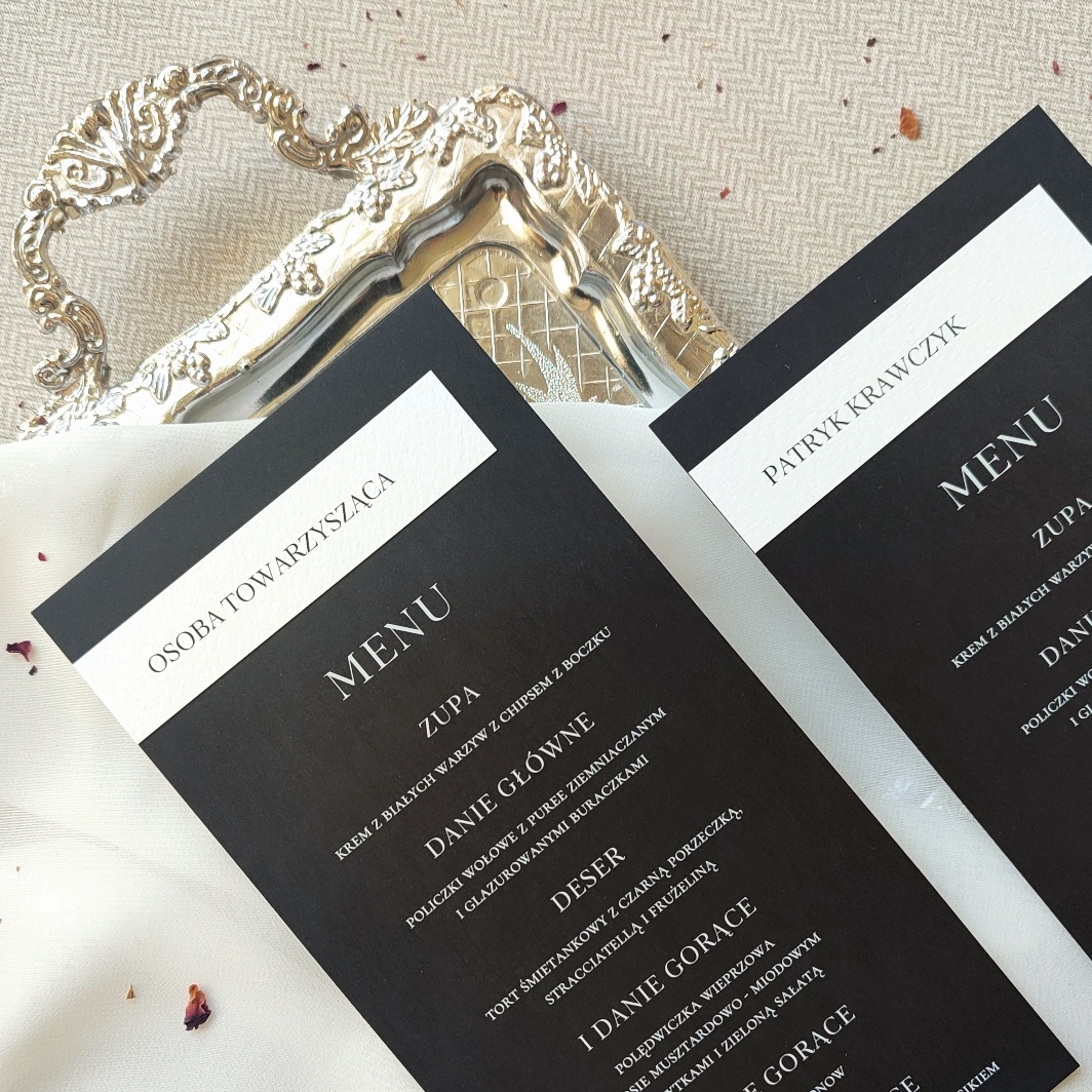 Napisz pierwszą opinię o „Menu prostokątne czarne z winietką”