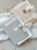 Do każdego modelu zaproszenia wykonujemy pozostałe elementy papeterii, np winietki, menu czy plan stołów, zachowując ten sam styl i jakość wykonania.