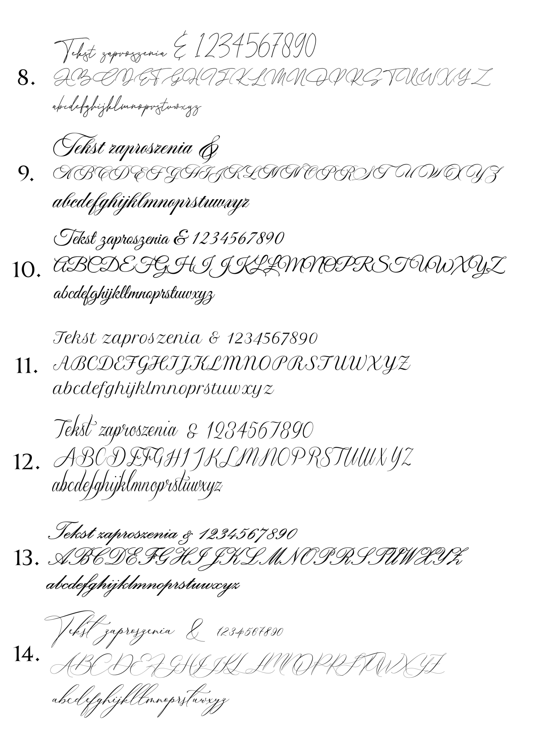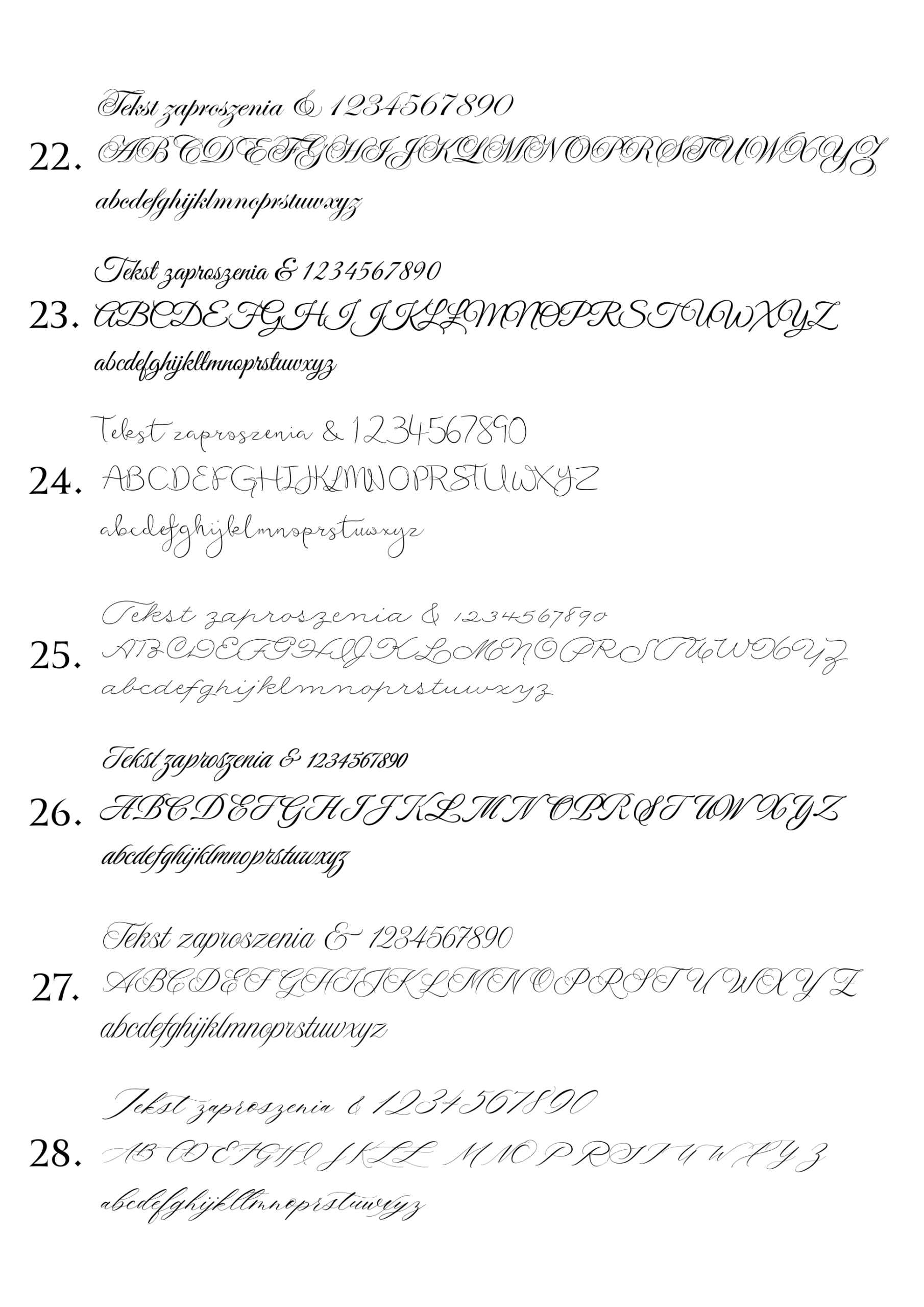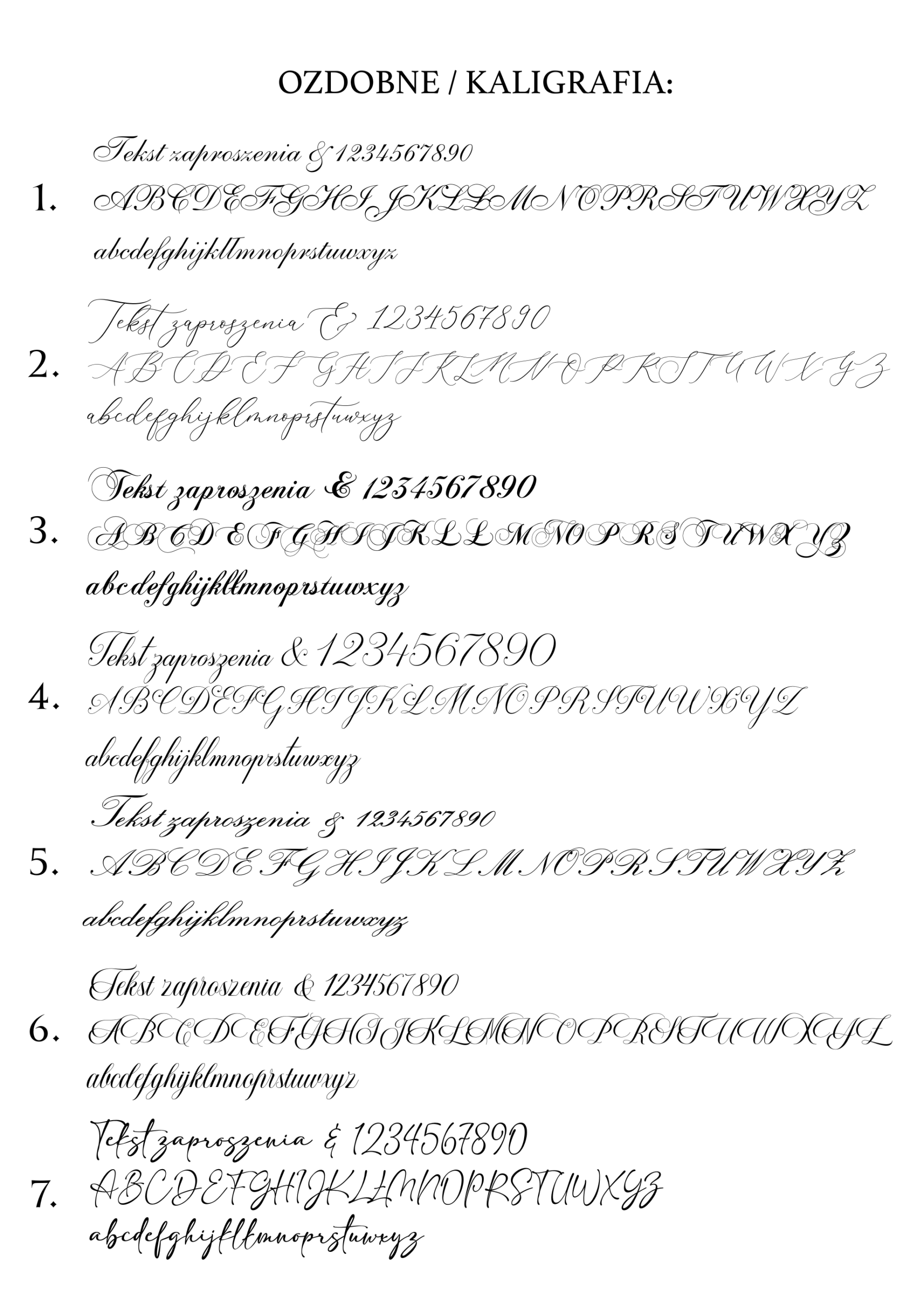 Poniżej przedstawiamy wzornik czcionek kaligraficznych dostępnych w naszej ofercie zaproszeń i dodatków.