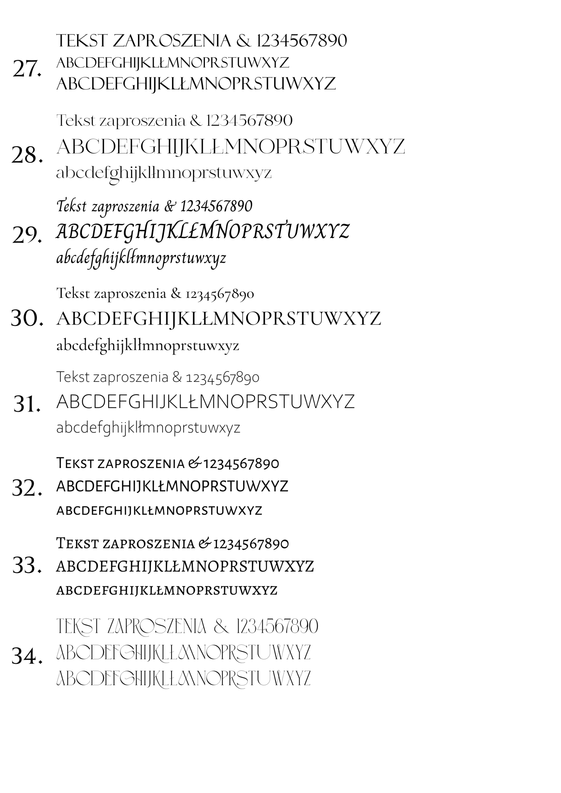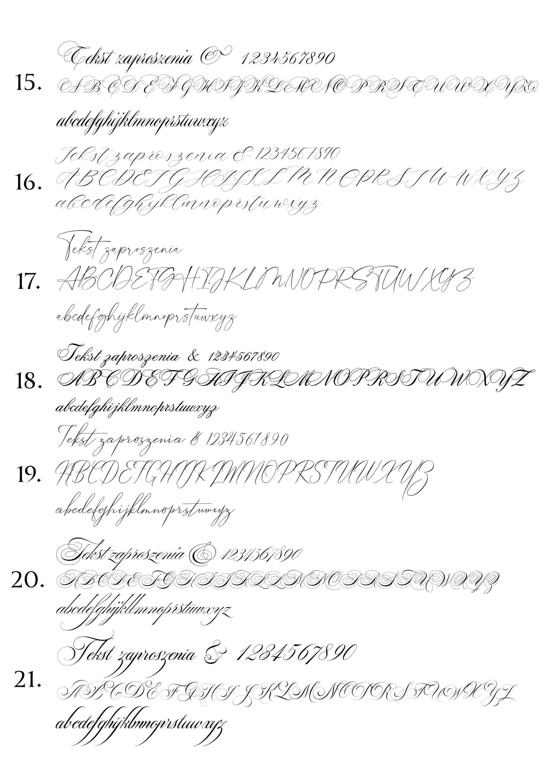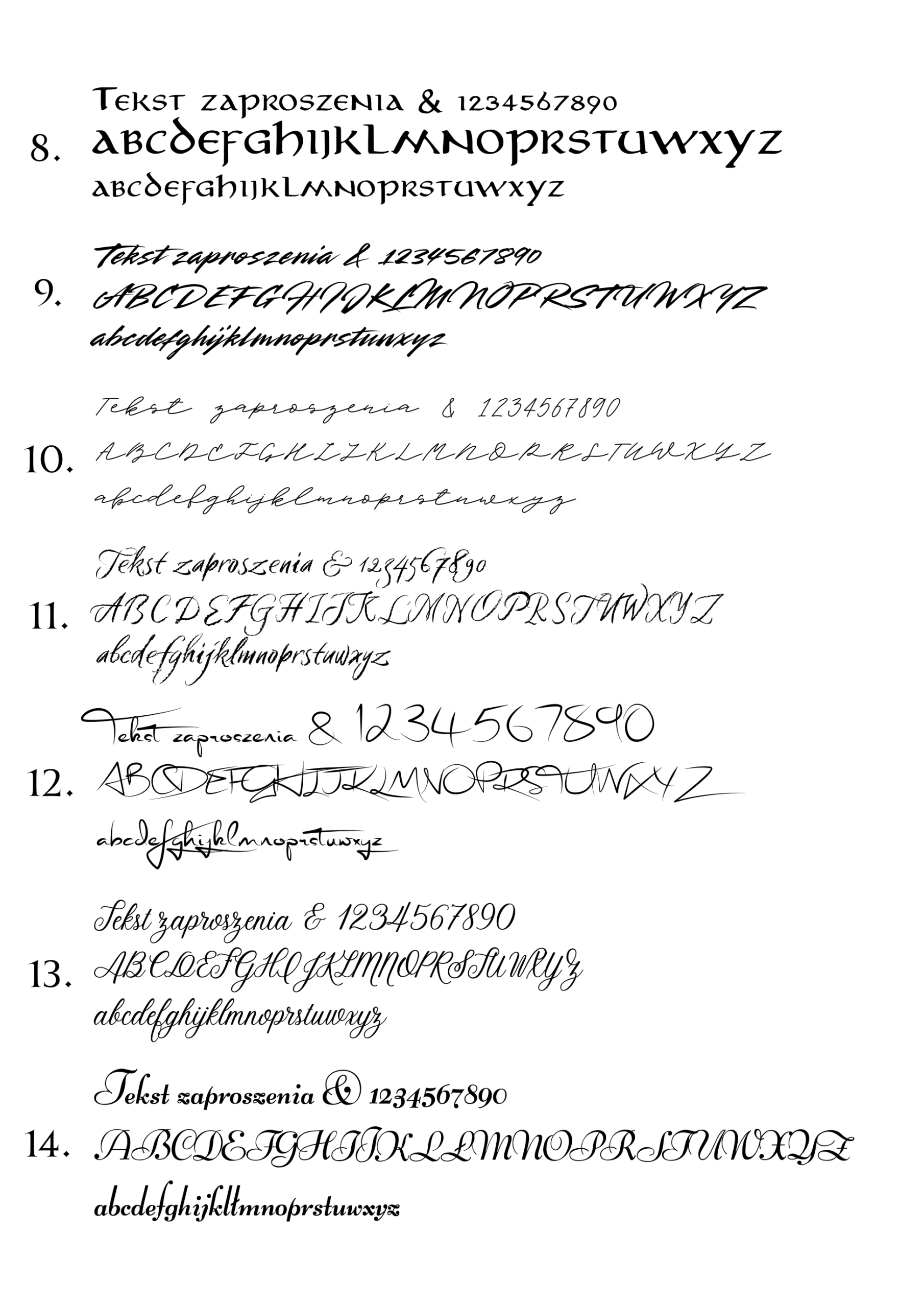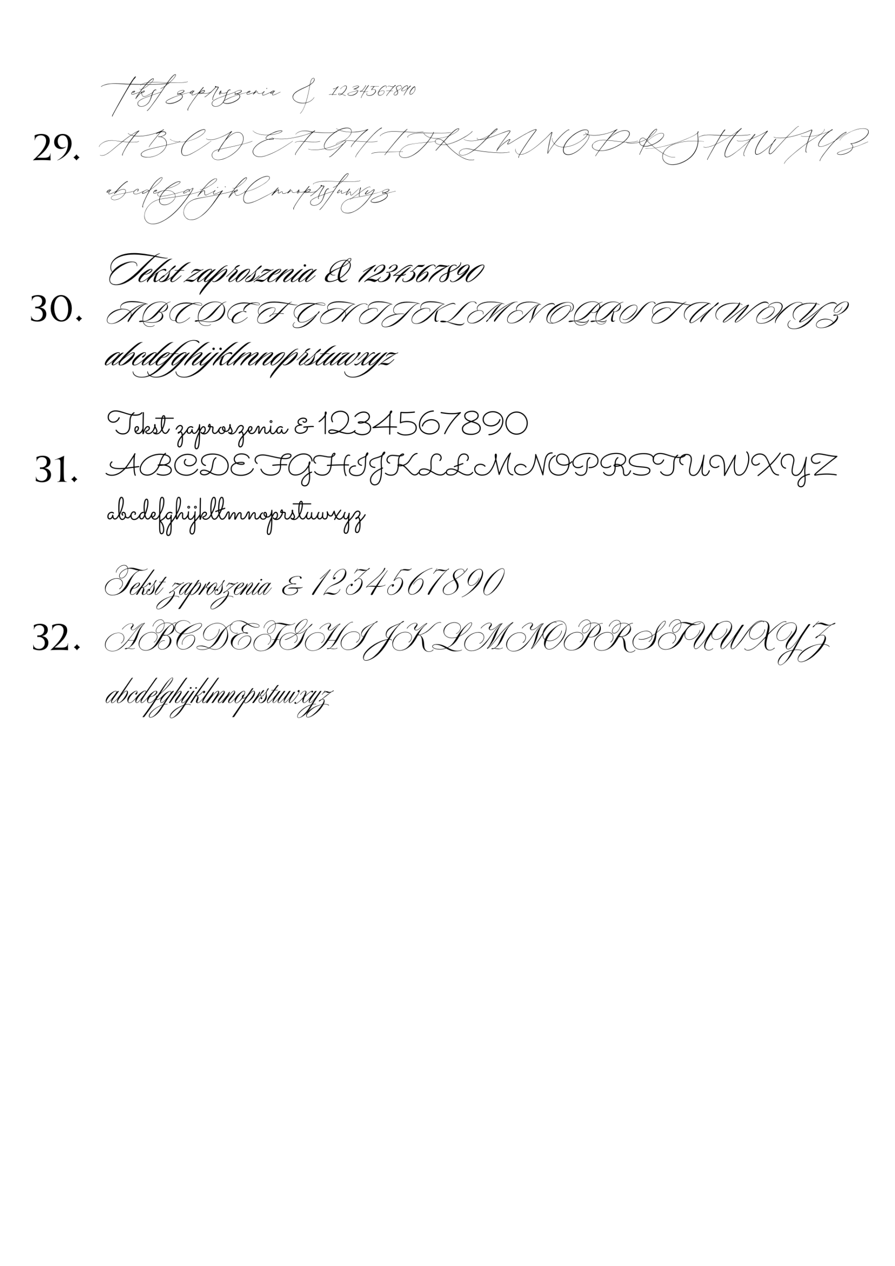 Poniżej przedstawiamy wzornik czcionek kaligraficznych dostępnych w naszej ofercie zaproszeń i dodatków.