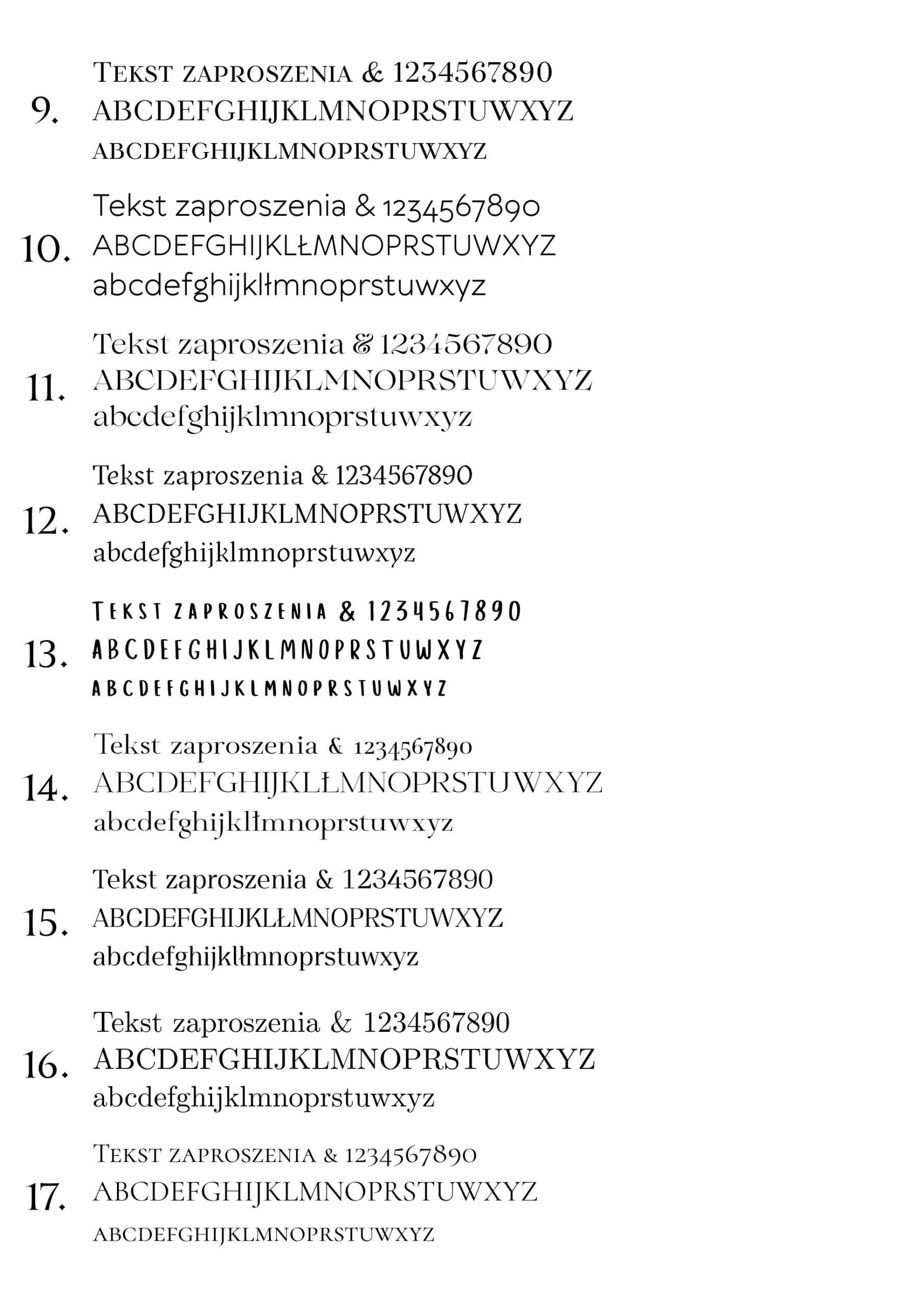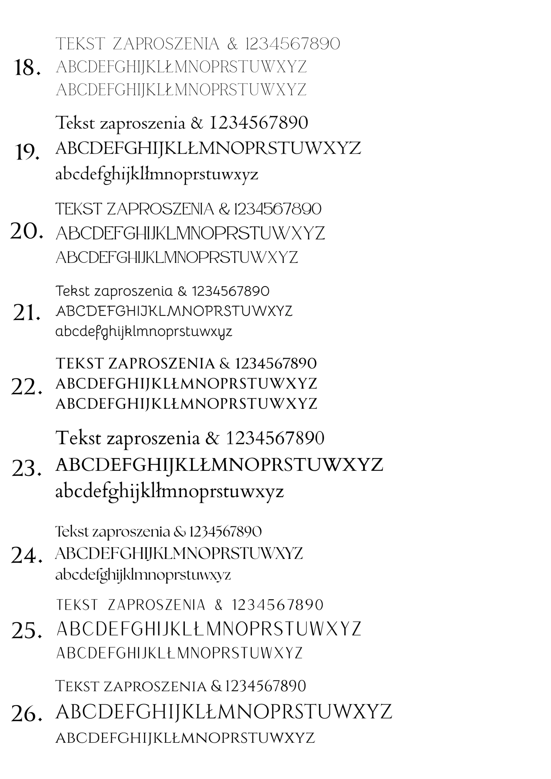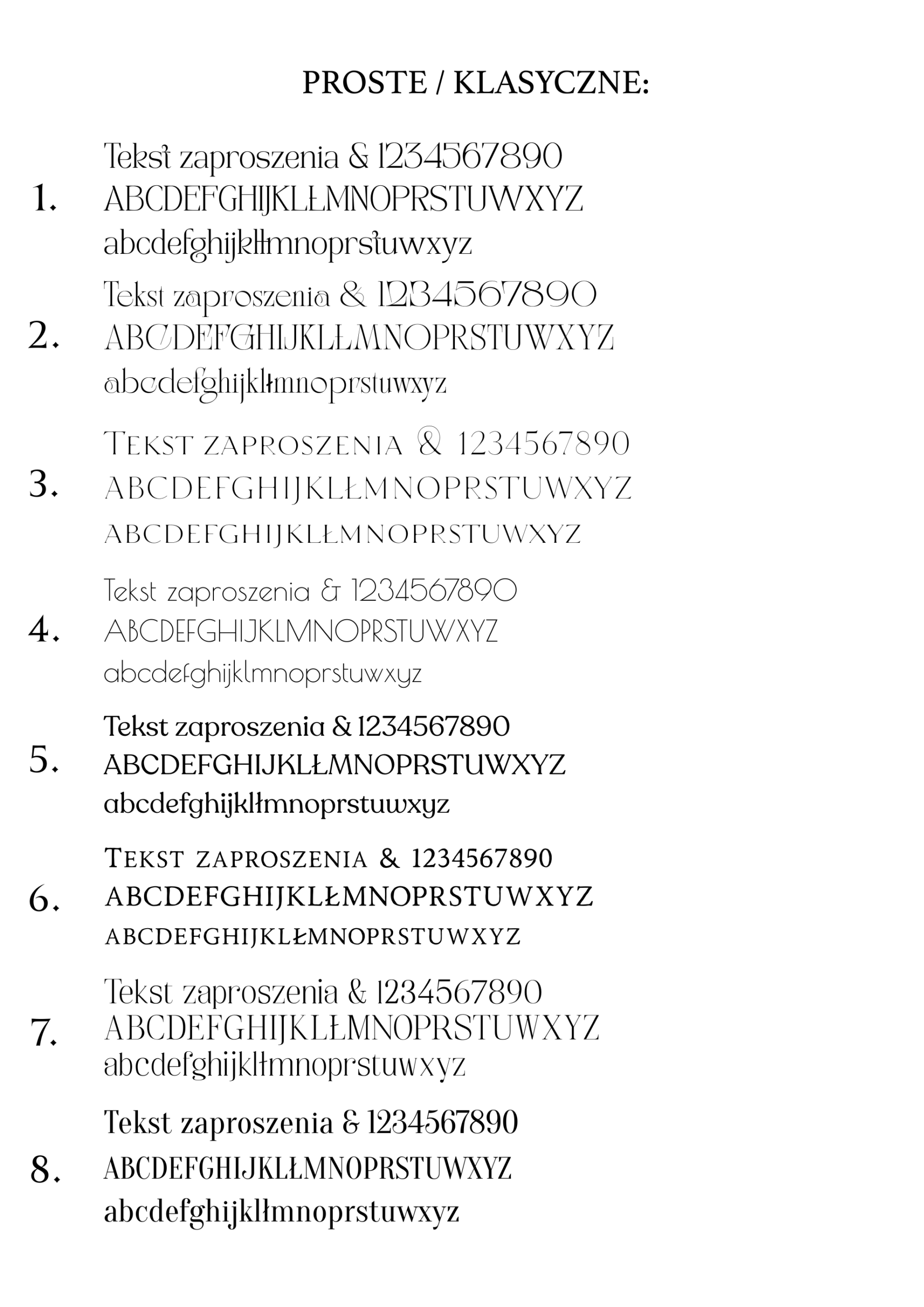 Poniżej przedstawiamy wzornik czcionek klasycznych dostępnych w naszej ofercie zaproszeń i dodatków.